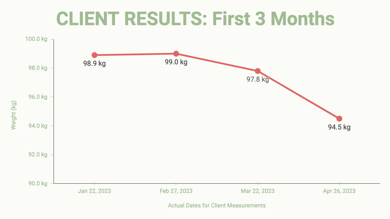 It takes time for our body to adapt and see changes. I do not want you to quit before then!Here's what an average person experiences as they make changes to their habits including eating and movement. In month 1, things start out slow as the body feels out new changes. Month 2, consistent habit building starts to show impact. By the 80 day mark a significant milestone will be achieved with diligent efforts.